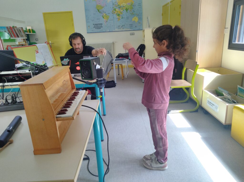 Mais une émission de radio sans musique, ça n’existe pas ! Alors, les élèves ont aussi créé la bande sonore de leur émission. « Trop bien de découvrir des instruments de musique qu’on ne connaît pas ! » Et surprise … Les élèves ont même eu le droit d’enregistrer leurs chansons préférées !